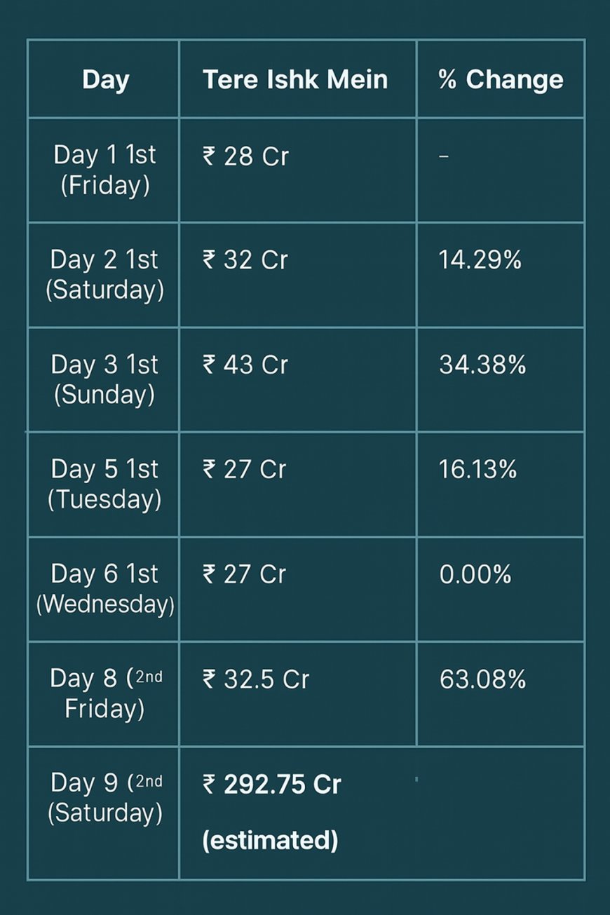 Tere Ishk Mein Box Office: Dhanush’s Highest-Grossing Film, Surpasses Raayan Tere Ishk Mein has officially rewritten the record books. The romantic drama has emerged as Dhanush’s highest-grossing film worldwide, beating the lifetime box office numbers of Raayan. The film continues to perform strongly even after its opening weeks, showing rare consistency across regions. According to trade reports, Tere Ishk Mein crossed the total worldwide collection of Raayan, which previously held the top spot in Dhanush’s filmography. Strong audience response, steady weekday earnings, and repeat viewership have played a major role in this achievement.